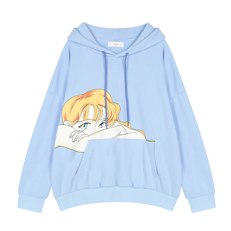 autumn women's Dongdaemun beautiful girl cartoon print loose college wind hooded pullover sweater