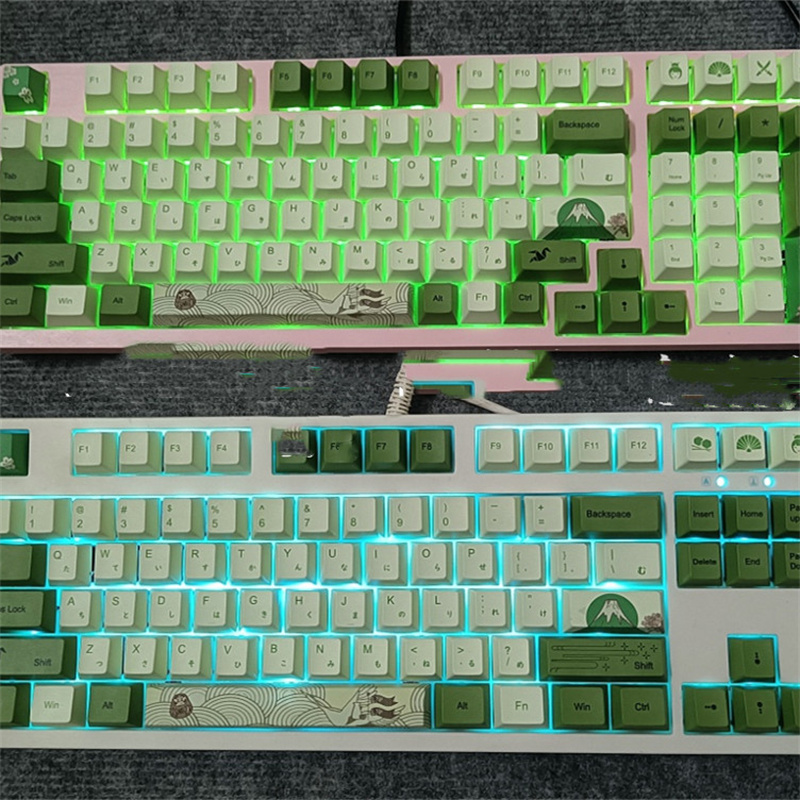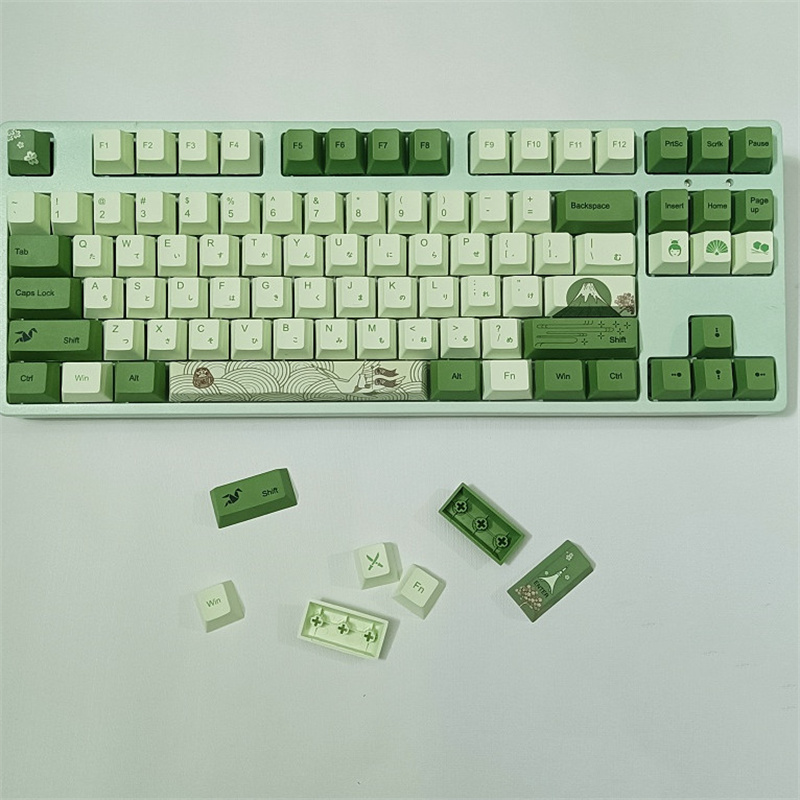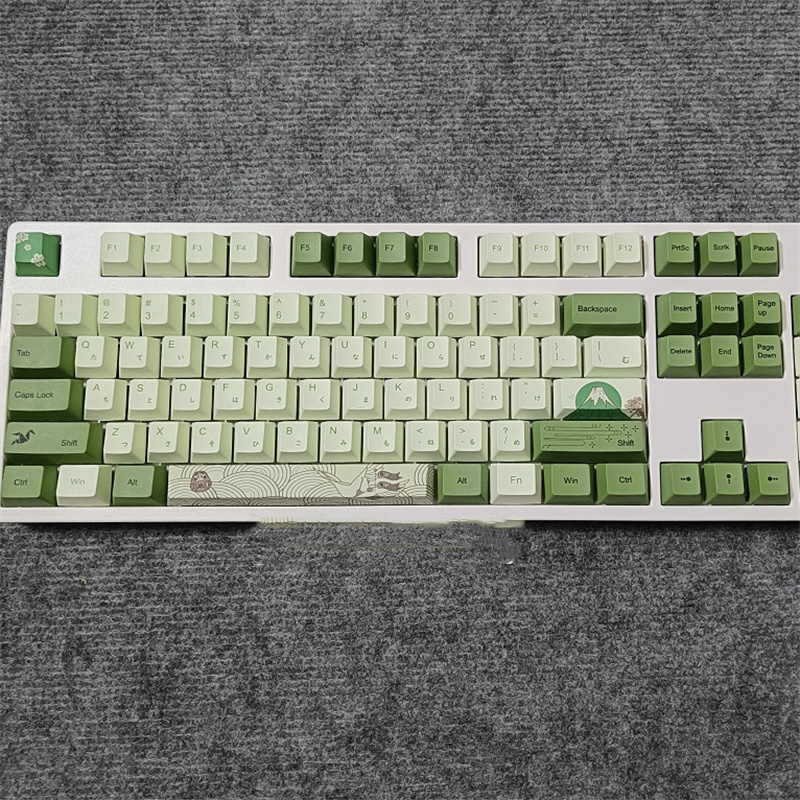 Material: PBTStyle: fashion and simplicityFeatures:SublimationColour: Matcha boxed small full set of 127 keys boxed