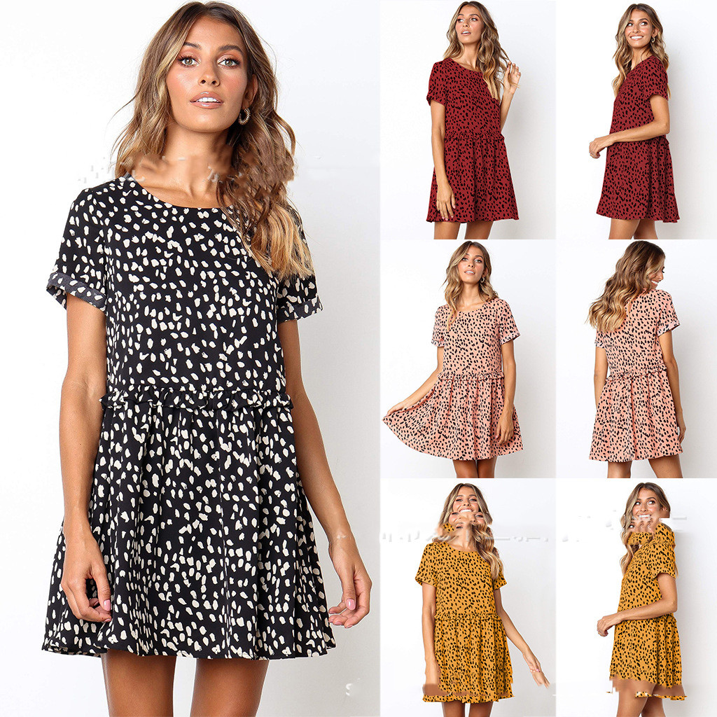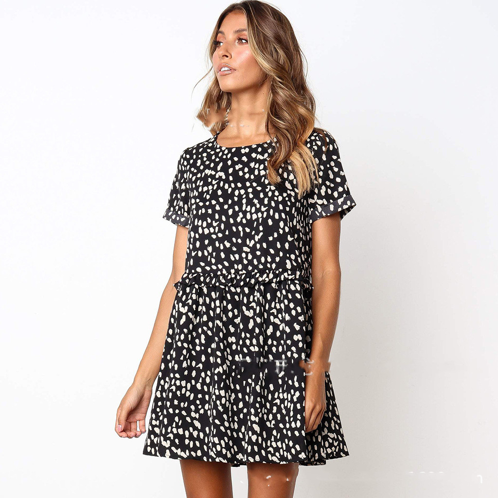 Round neck casual print short sleeve dress