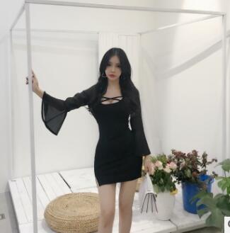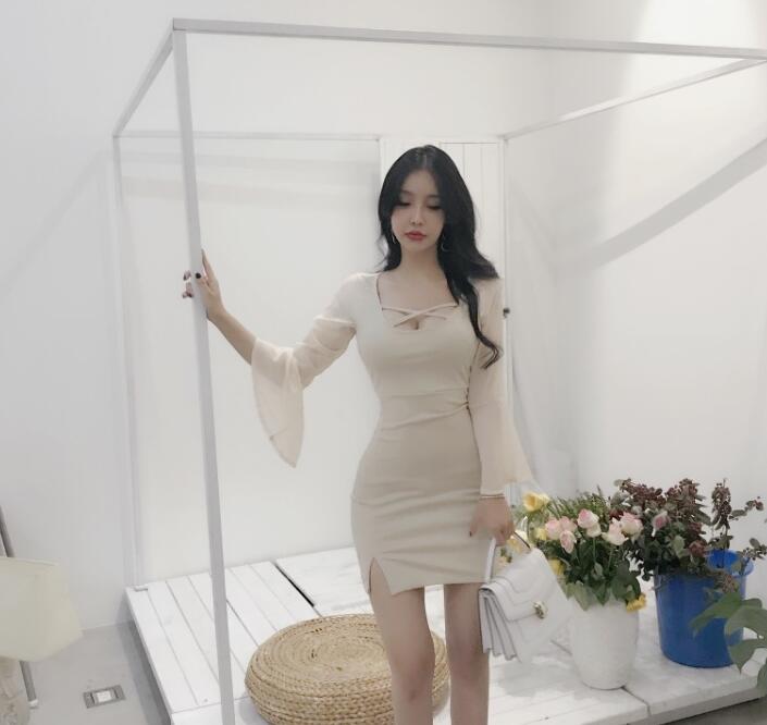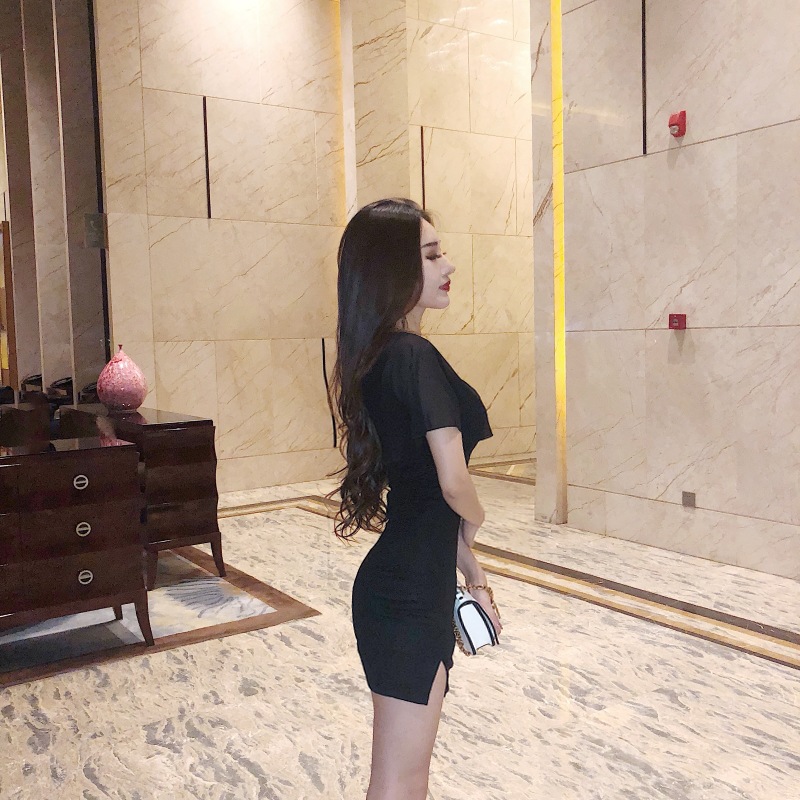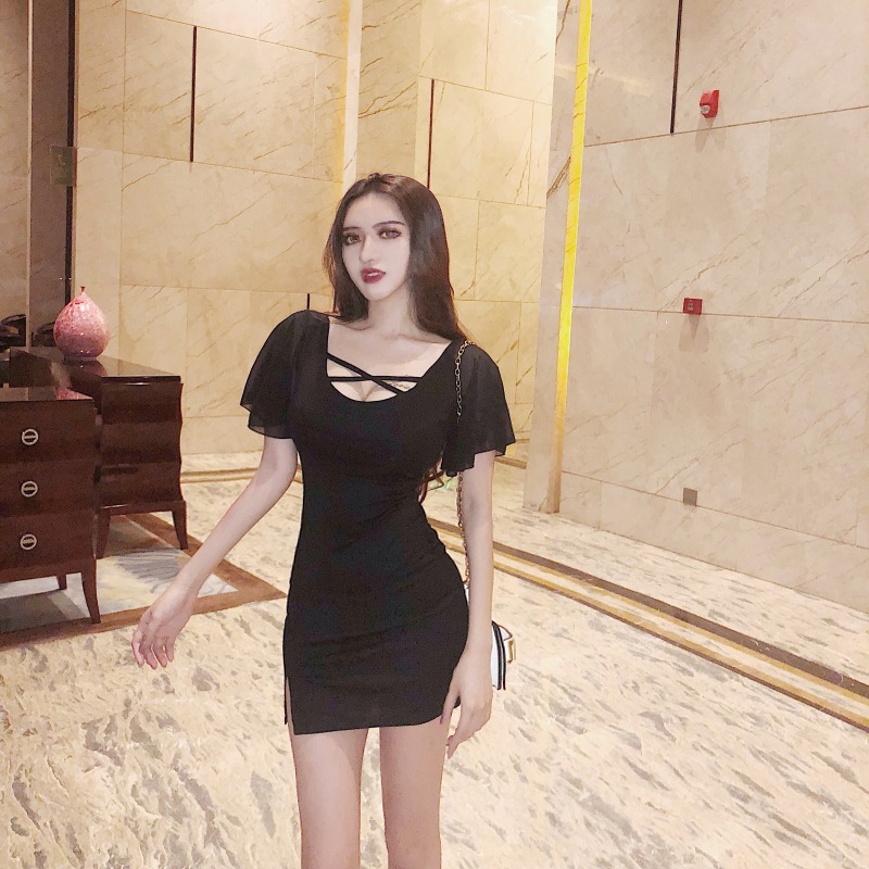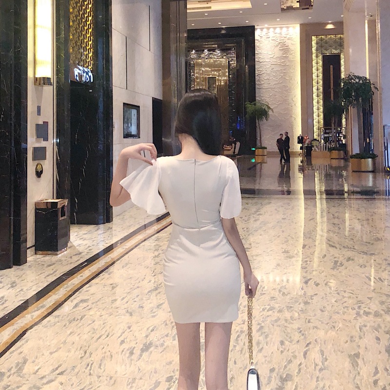 summer dress low-cut U-neck chiffon lotus leaf sleeves hip split night skirt