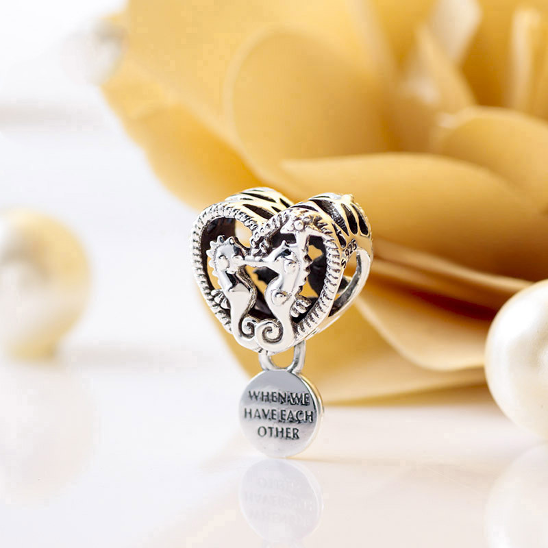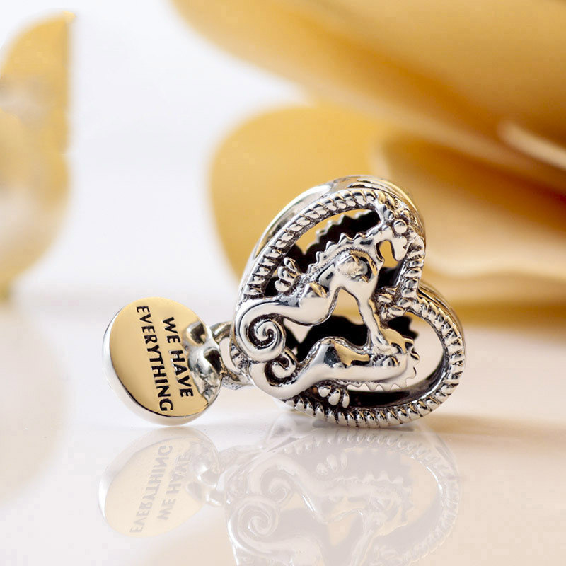 Hollow seahorse pattern heart charm