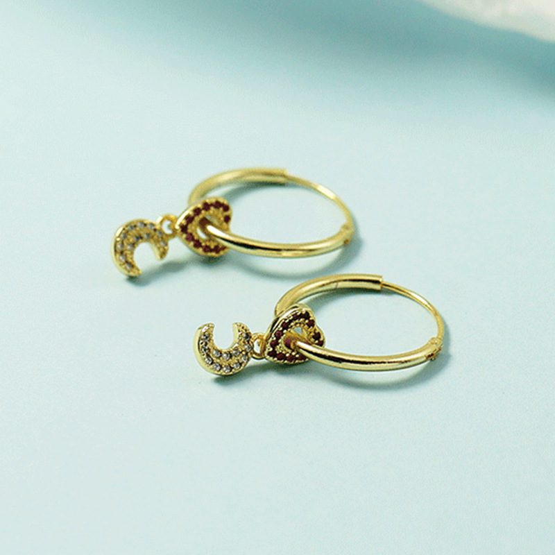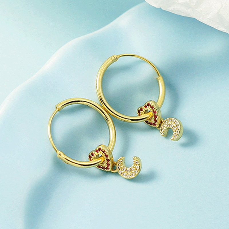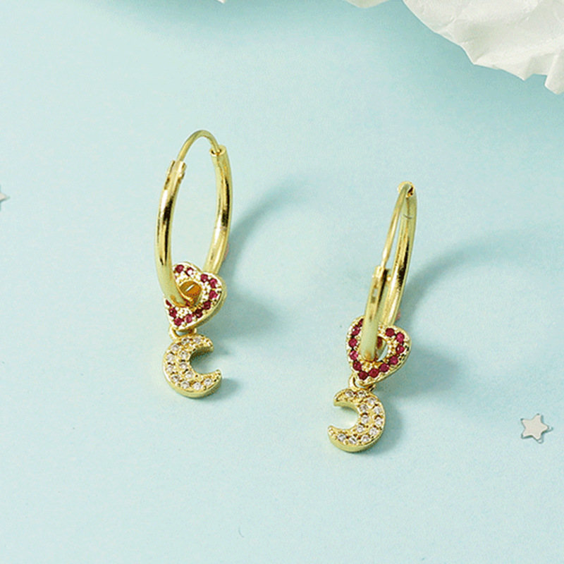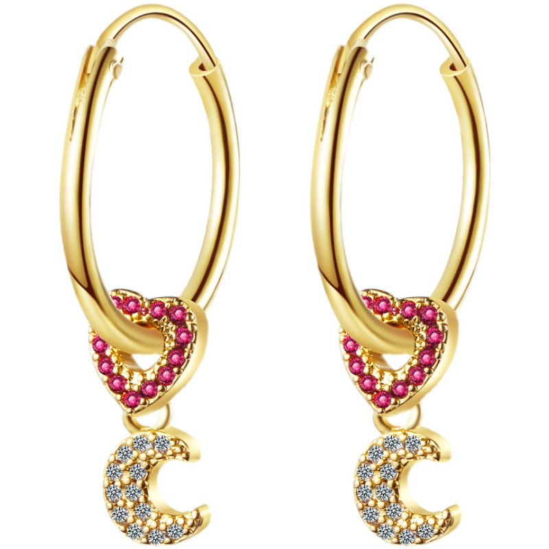 Product information:Treatment Process: Electroplating Color: Bright Moon Love earrings Inlay material: gold-plated inlaid artificial gemstone/semi-precious stone Style: Women's Material: Copper Shape: heart shape, love heart Style: fashion OL