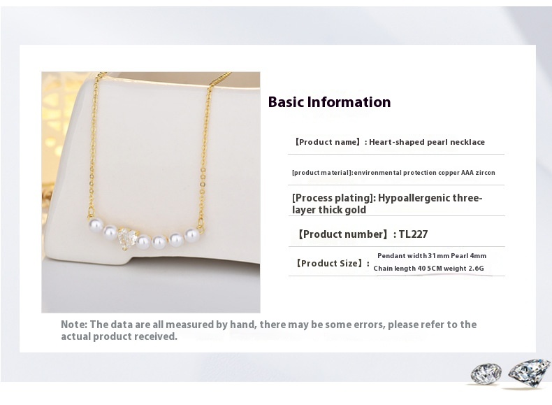 Color: TL227 heart-shaped pearl necklace (white gold color),TL227 heart-shaped pearl necklace (rose gold),TL227 heart-shaped pearl necklace (yellow gold)