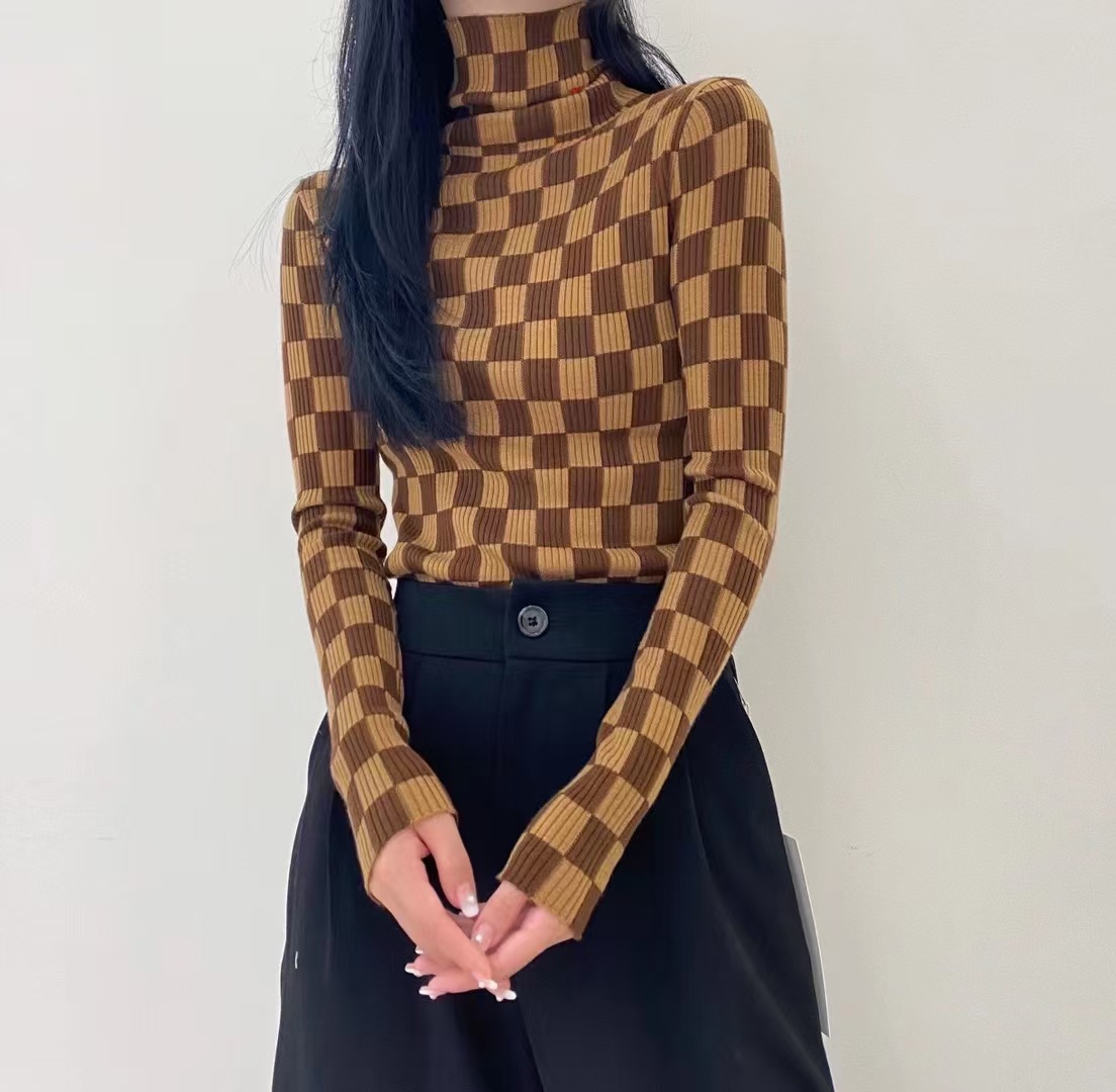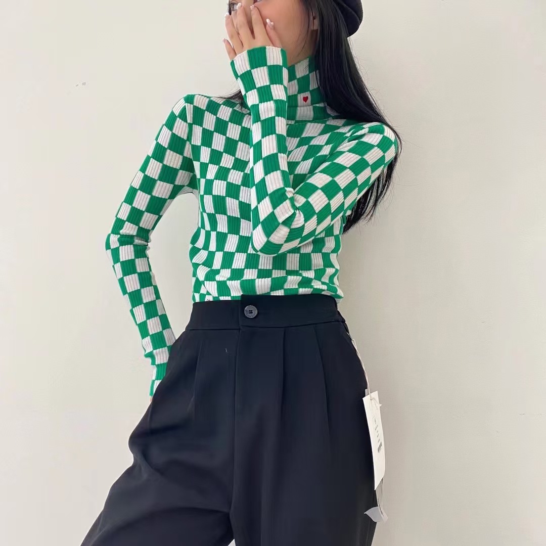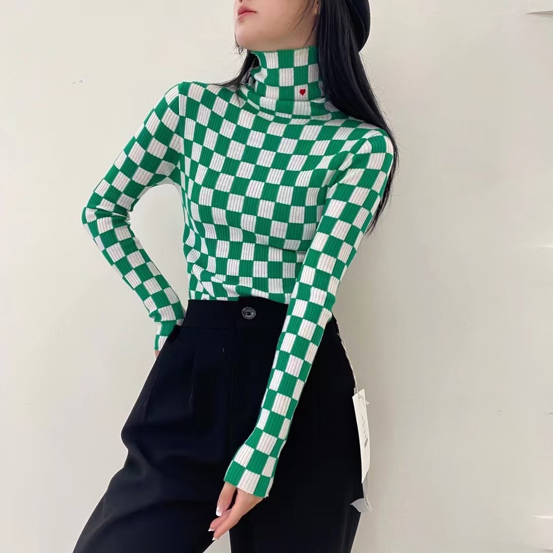 Product information:Fabric name: chemical fiber blendedPattern: PlaidThickness: moderateYarn thickness: ordinary woolSweater Technology: KnittingColor: green, black, coffee colorSize Information:Ssize: one sizePacking list:Ladies' top*1