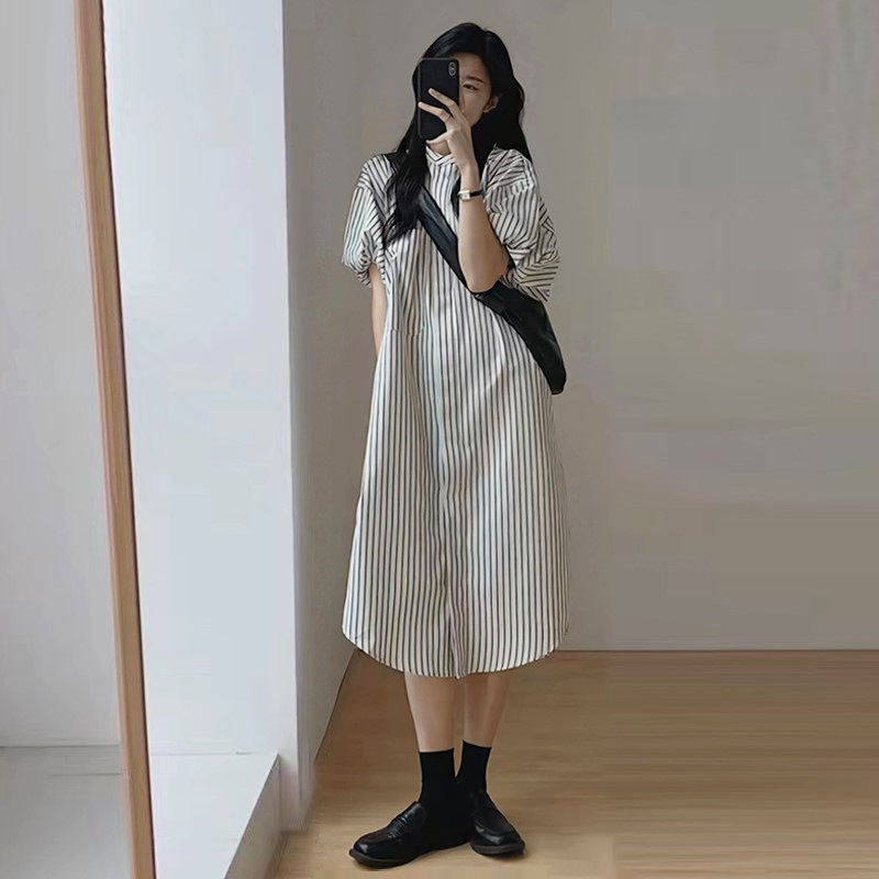 Product information: Pattern: stripes Skirt type: A- line skirt Color: white, brown Size: M,L,XL,2XL Fabric name: Cotton Craft: Collage