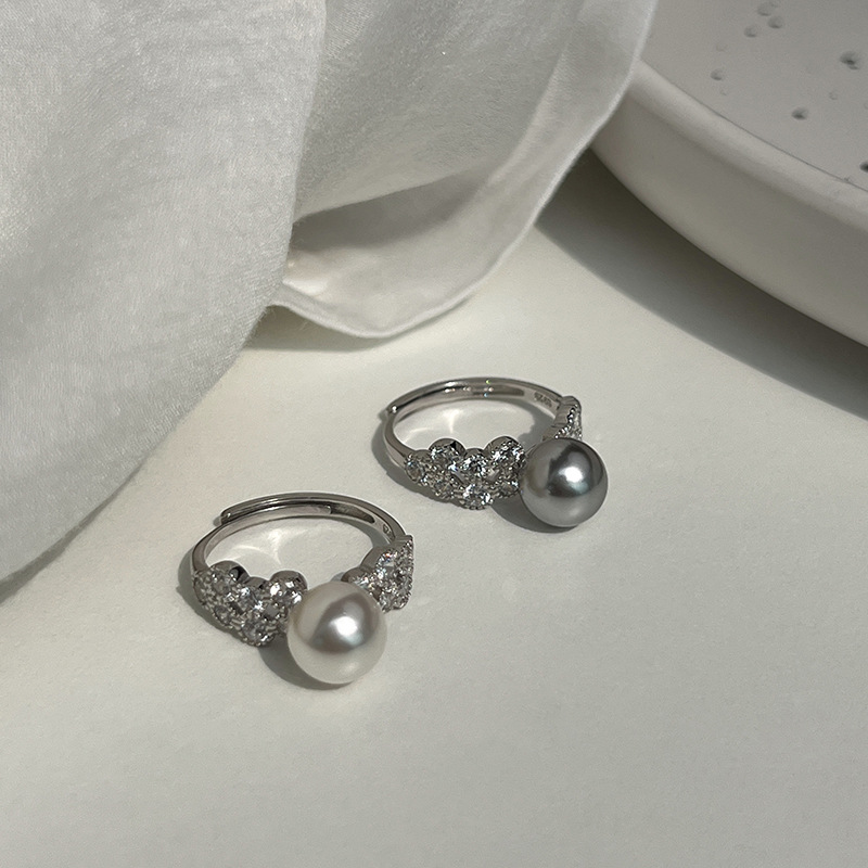 Product information:Treatment Process: Diamond Color: white pearl ring, gray pearl ring Material: Silver Shape: Geometry Popular elements: Pearl