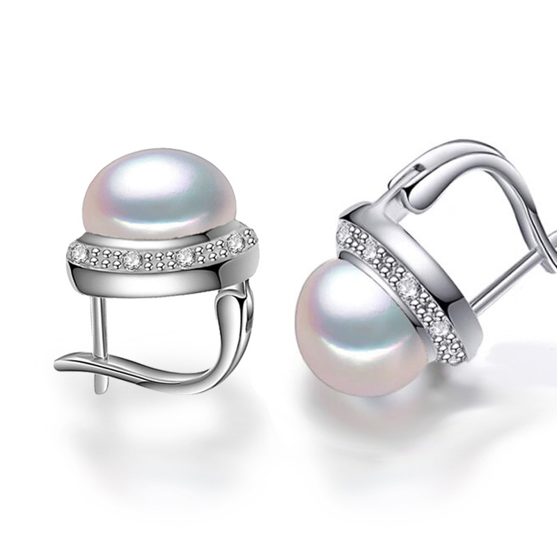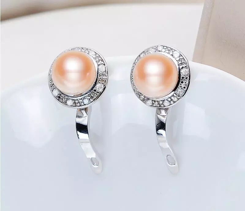 Name: Round Zircon Freshwater Pearl 8MM Stud EarringsColor: white. pinkMaterial: Copper + Zircon + Pearl