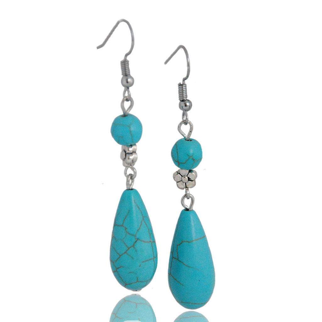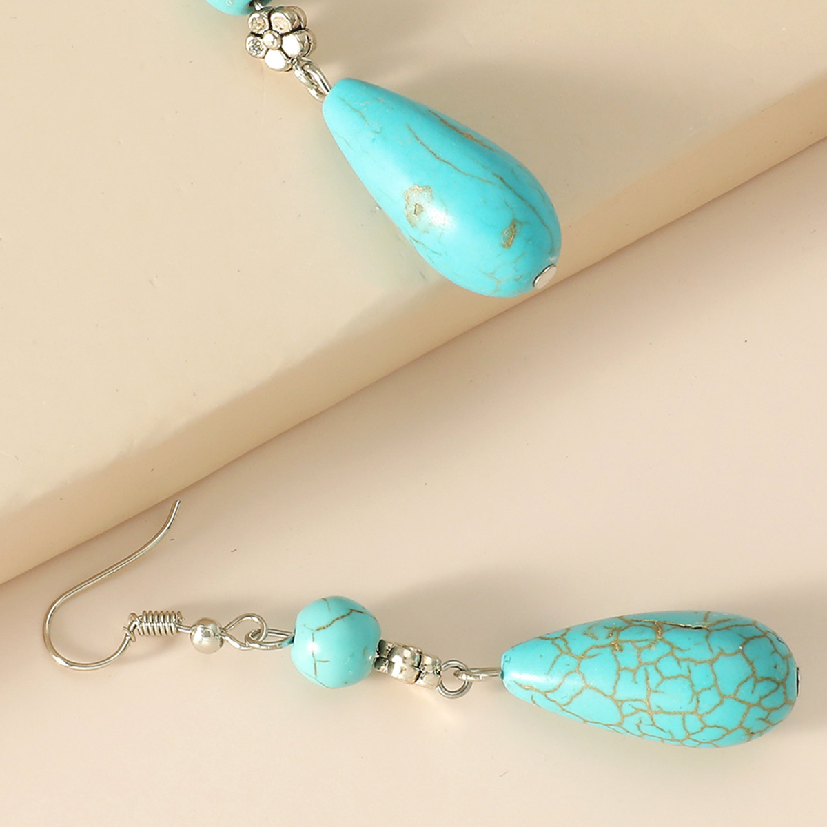 New Tibetan Silver Earrings Ethnic Style Jewelry Retro Turquoise Earrings Drop Shaped Blue Earrings Wholesale