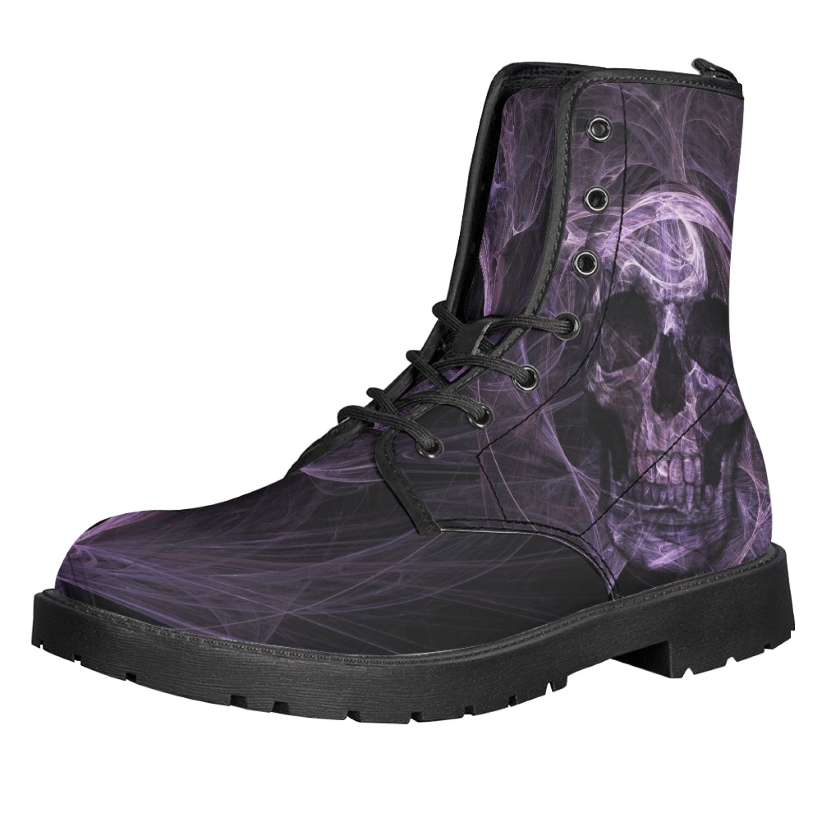 Printed Women's Leather Flat Bottom Low Heel British Martin Boots