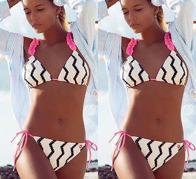 European and American style ladies split bikini sexy wave lace hanging neck swimsuit