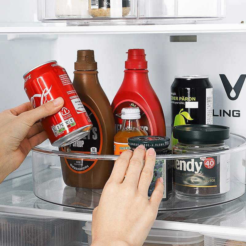 Refrigerator transparent rotating storage tray