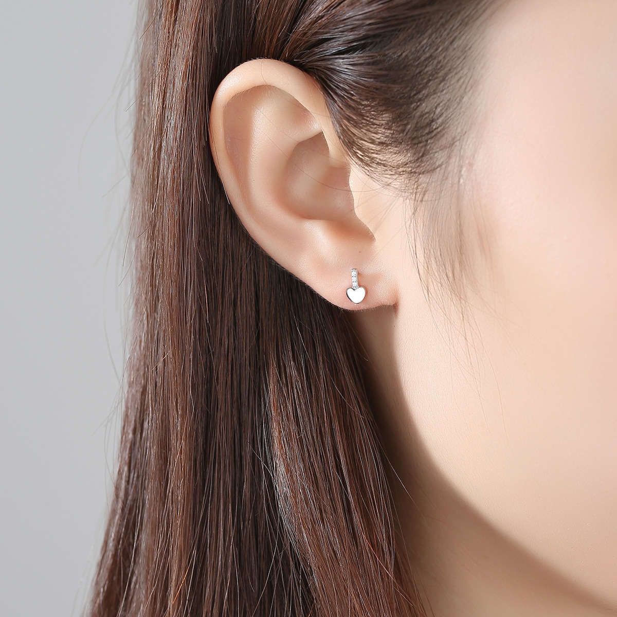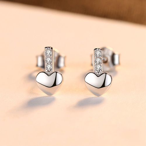 S925 Silver Hypoallergenic Glossy Heart-shaped Stud Earrings