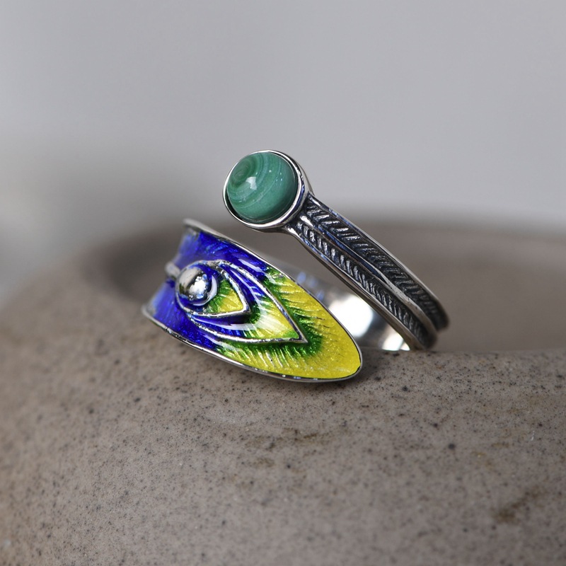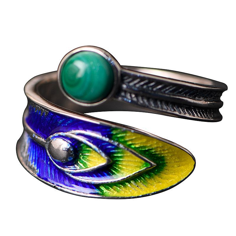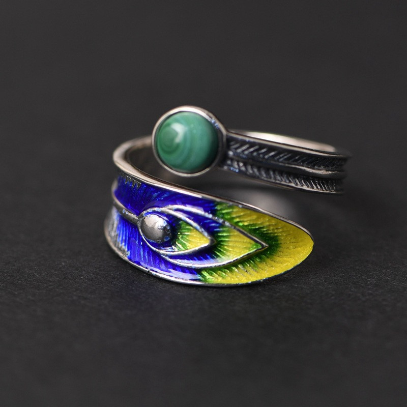 Burnt blue feather silver ring
