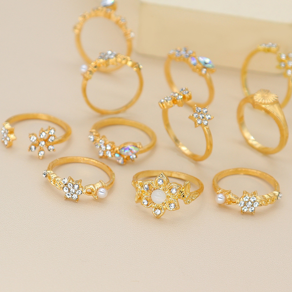 Material: AlloyStyle; Europe and AmericaModeling; flowersTreatment process; electroplatingStyle; unisexInlaid material; alloy inlaid artificial gems/semi-precious stonesColor; goldensize: one size