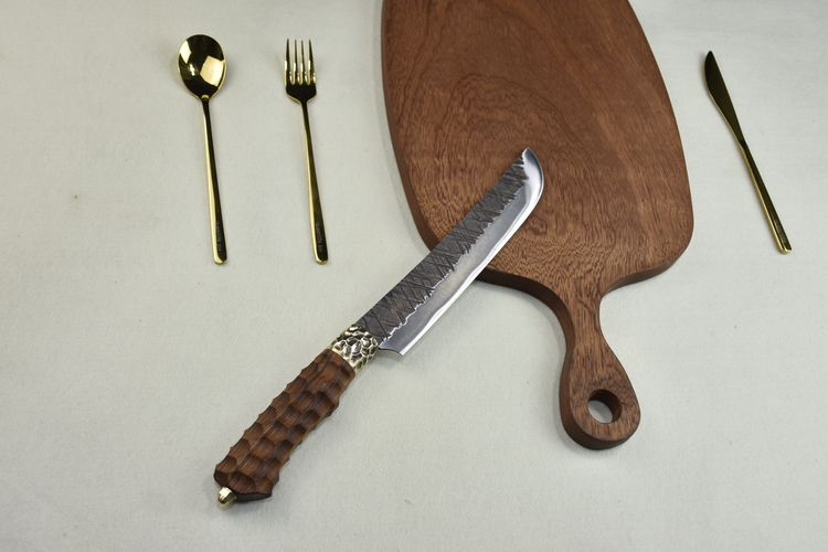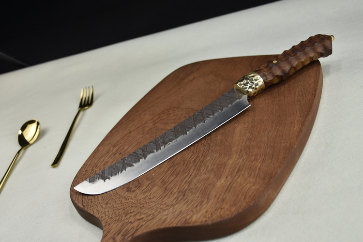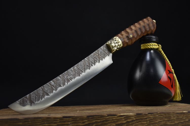 Full length: 38cmBlade length: 22cmHandle length: 14cmBlade width: 4cm at the widest pointThickness: 0.3cmBlade material: 7Cr17Mov (7 chromium 17 molybdenum vanadium steel)Handle material: rosewood