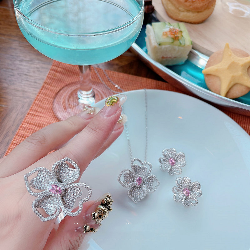 Color: a lily zircon pendant necklace, a lily zircon open ring, a pair of lily zircon ear studs