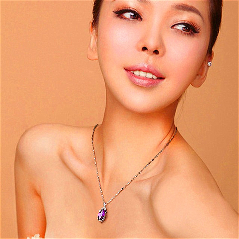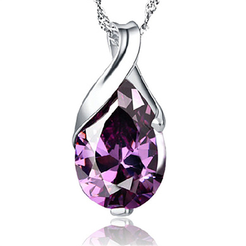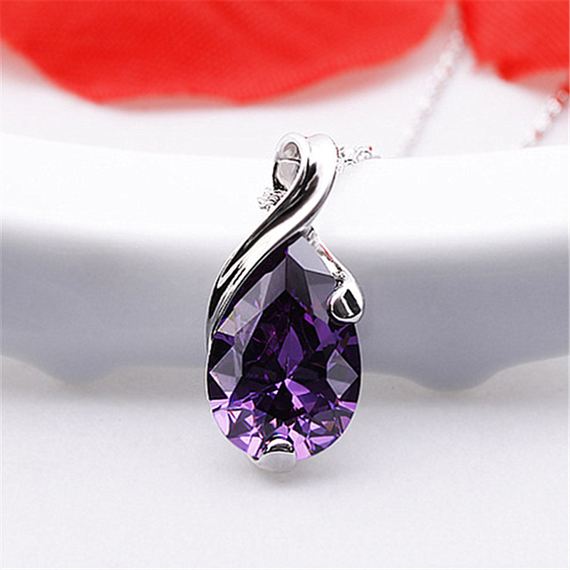 Color: Amethyst Pendant [Without Chain], Platinum Plated Water Wave Chain [45 cm], Amethyst Pendant + Water Wave Chain [Set