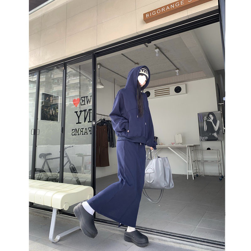 Color: khaki sweatshirt, navy blue sweatshirt, khaki skirt, navy blue skirt