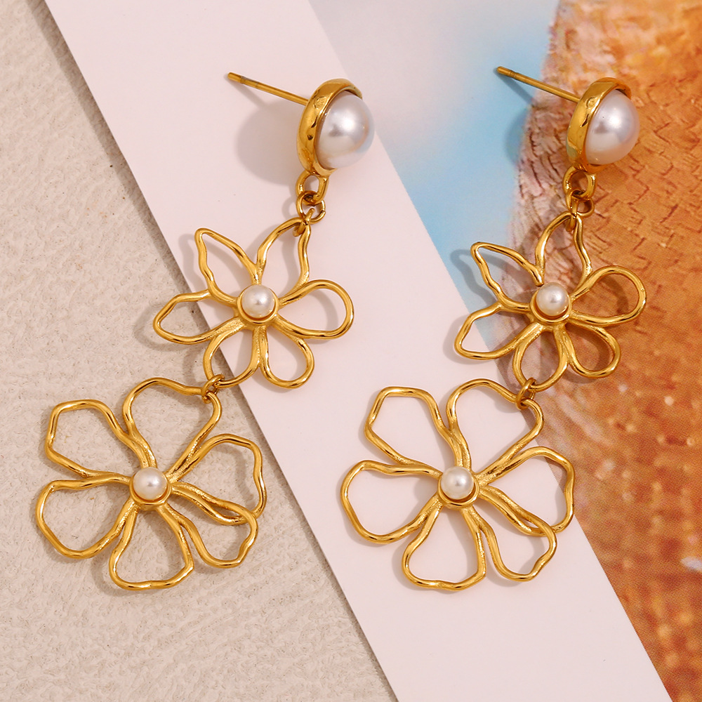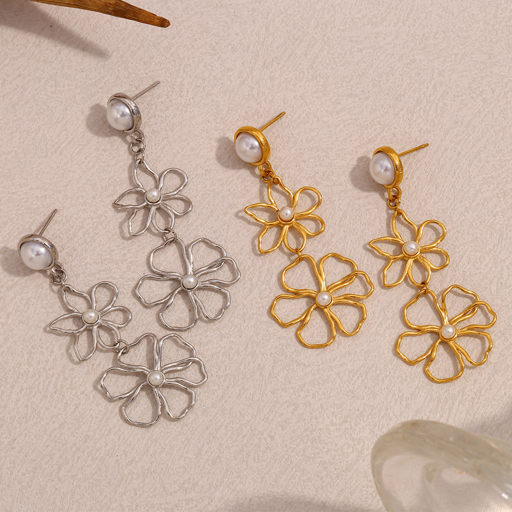 Product information:Treatment Process: Electroplating Color: Line flower ear studs-gold, line flower ear studs-steel color Applicable population: Female Material: Stainless steel Shape: Flower