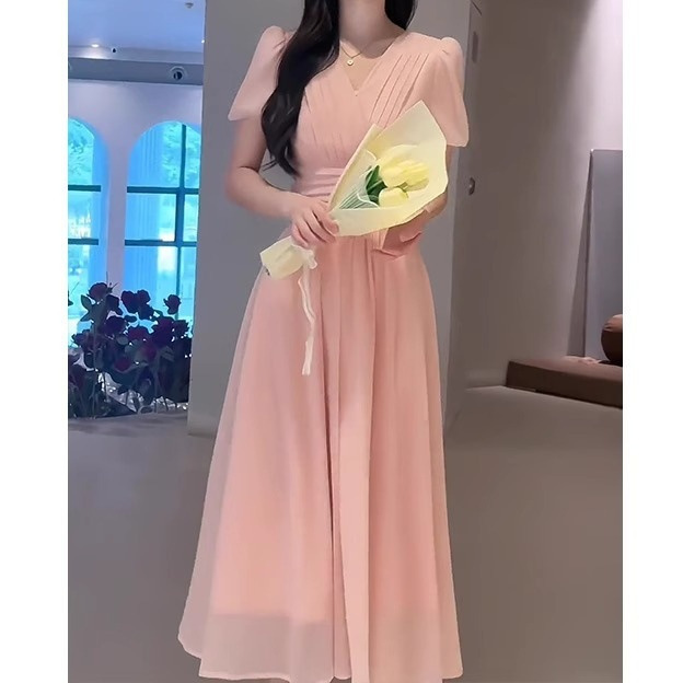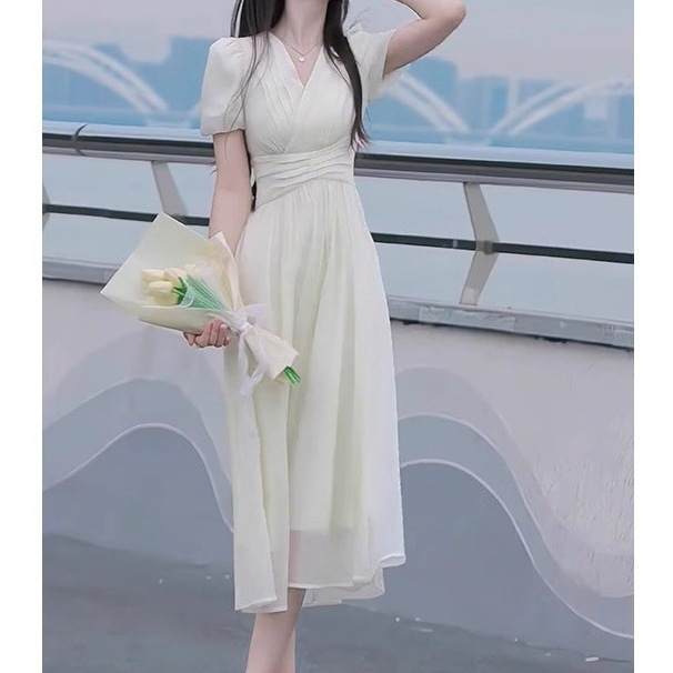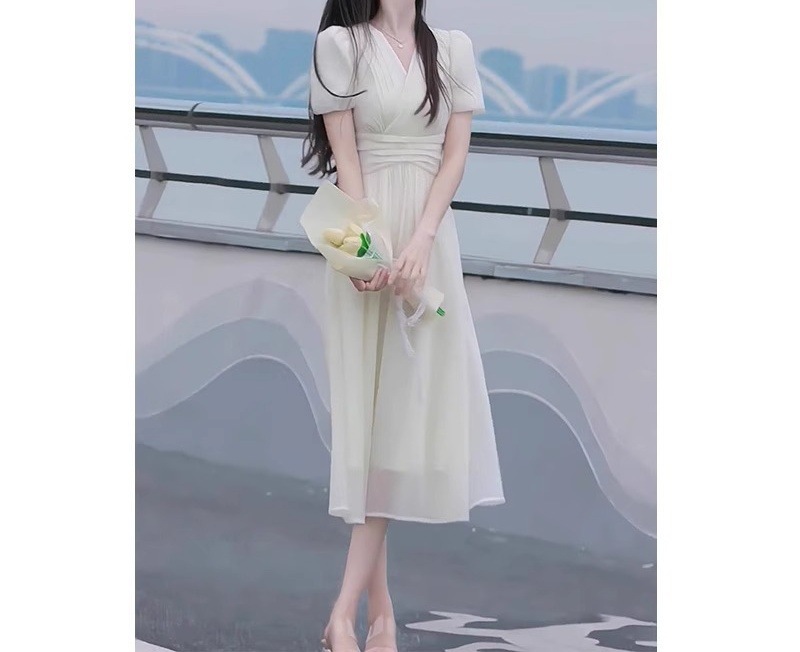 Product information: Pattern: solid color Skirt type: A- line skirt Waist Type: Mid waist Style type: temperament commute Sleeve type: puff sleeve Main fabric composition: Polyester Style: commuting style Craft: zipper solid color strap
