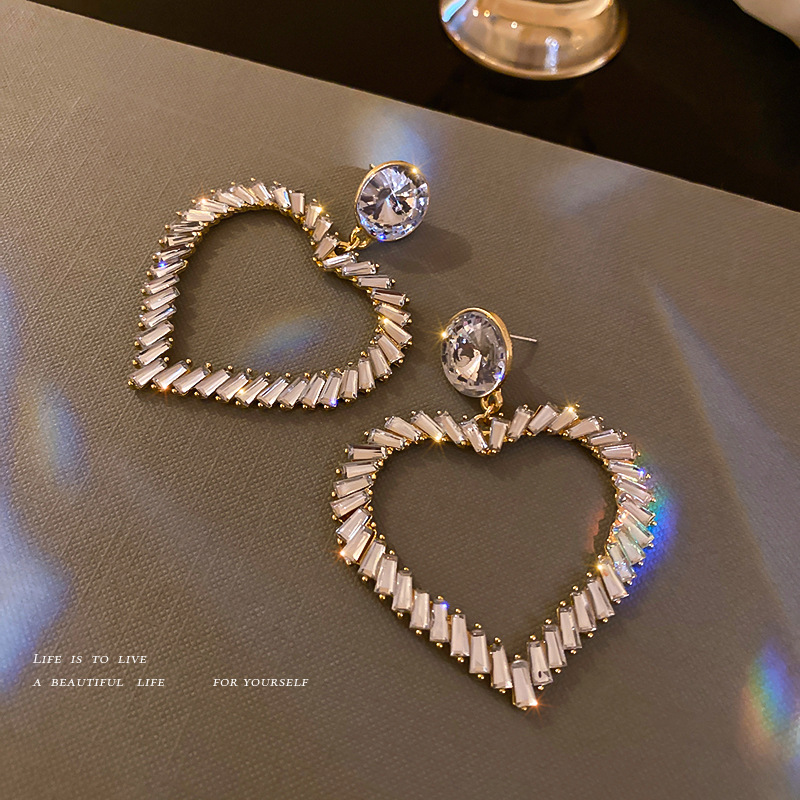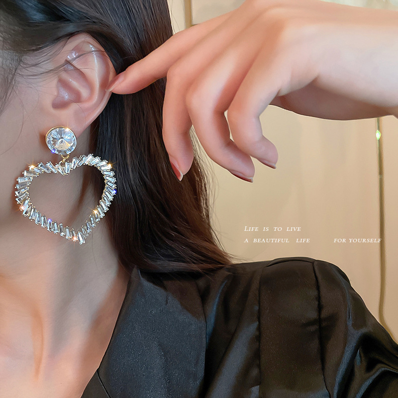 Product Information:Material: CopperStyle: Women'sShape: Heart-shapedTreatment process: zirconInlay material: zirconColor: Silver Needle. LovePacking List:Copper earrings x1 pair