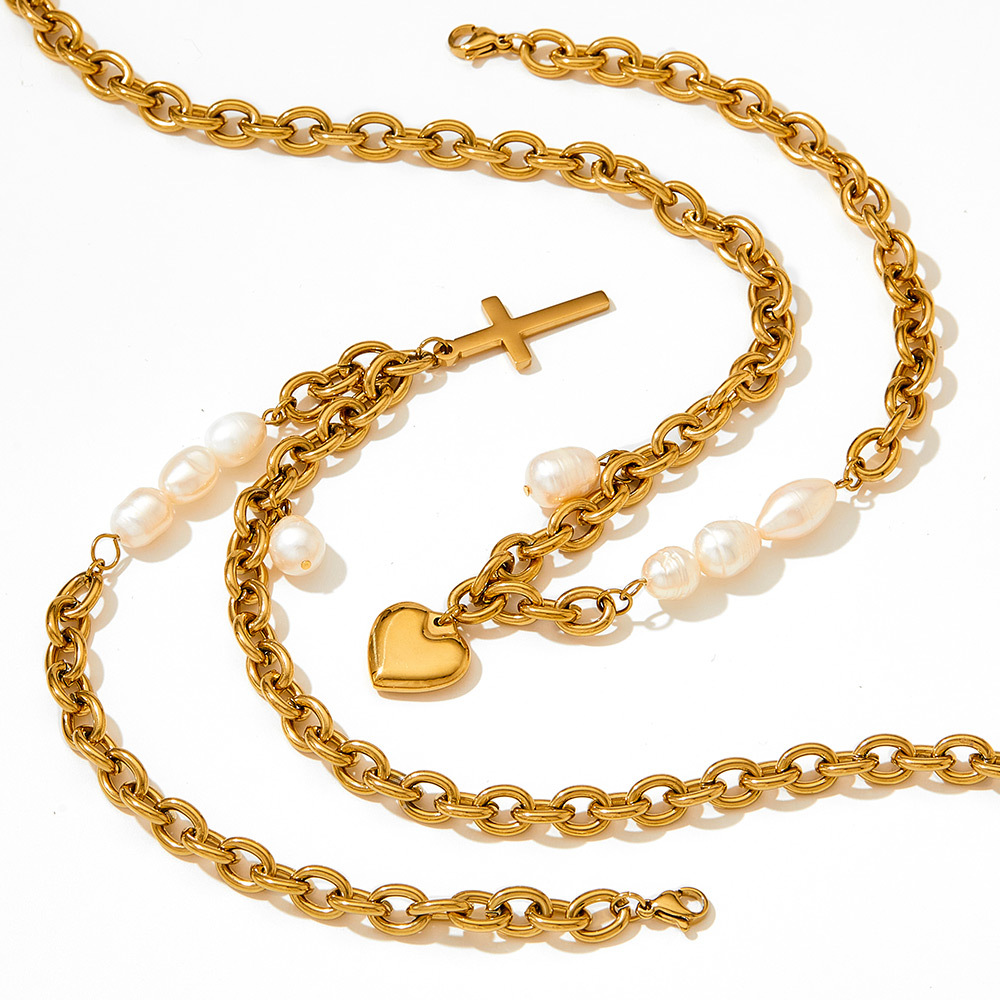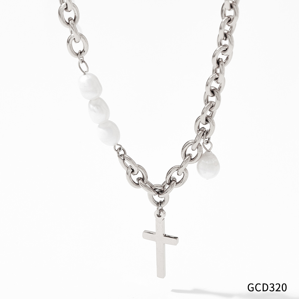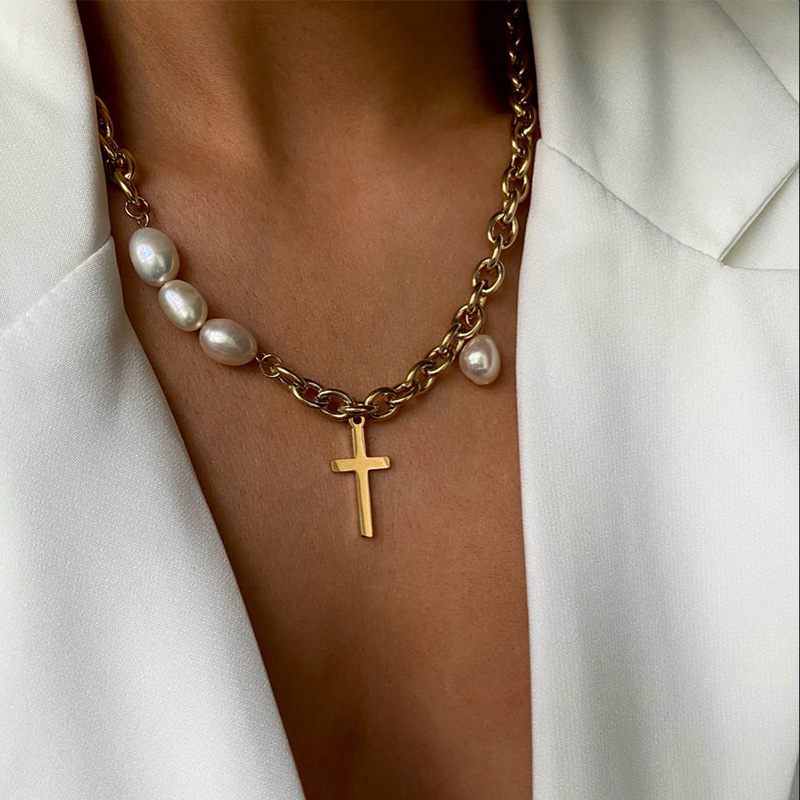 Style: cross stitch pearl necklace natural short pearl necklace
