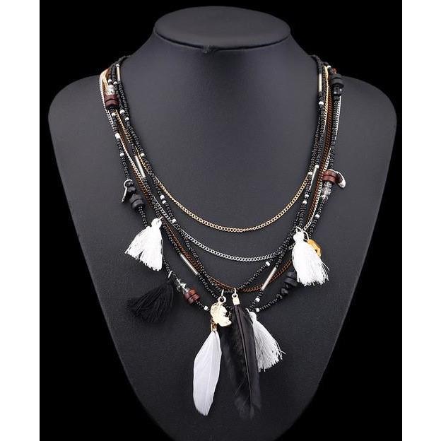 Bohemia Multicolor Long Tassel Beaded Feather Necklace