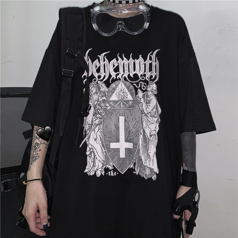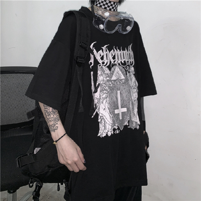 Korean Version Of The Dark Cross Print Short Sleeves