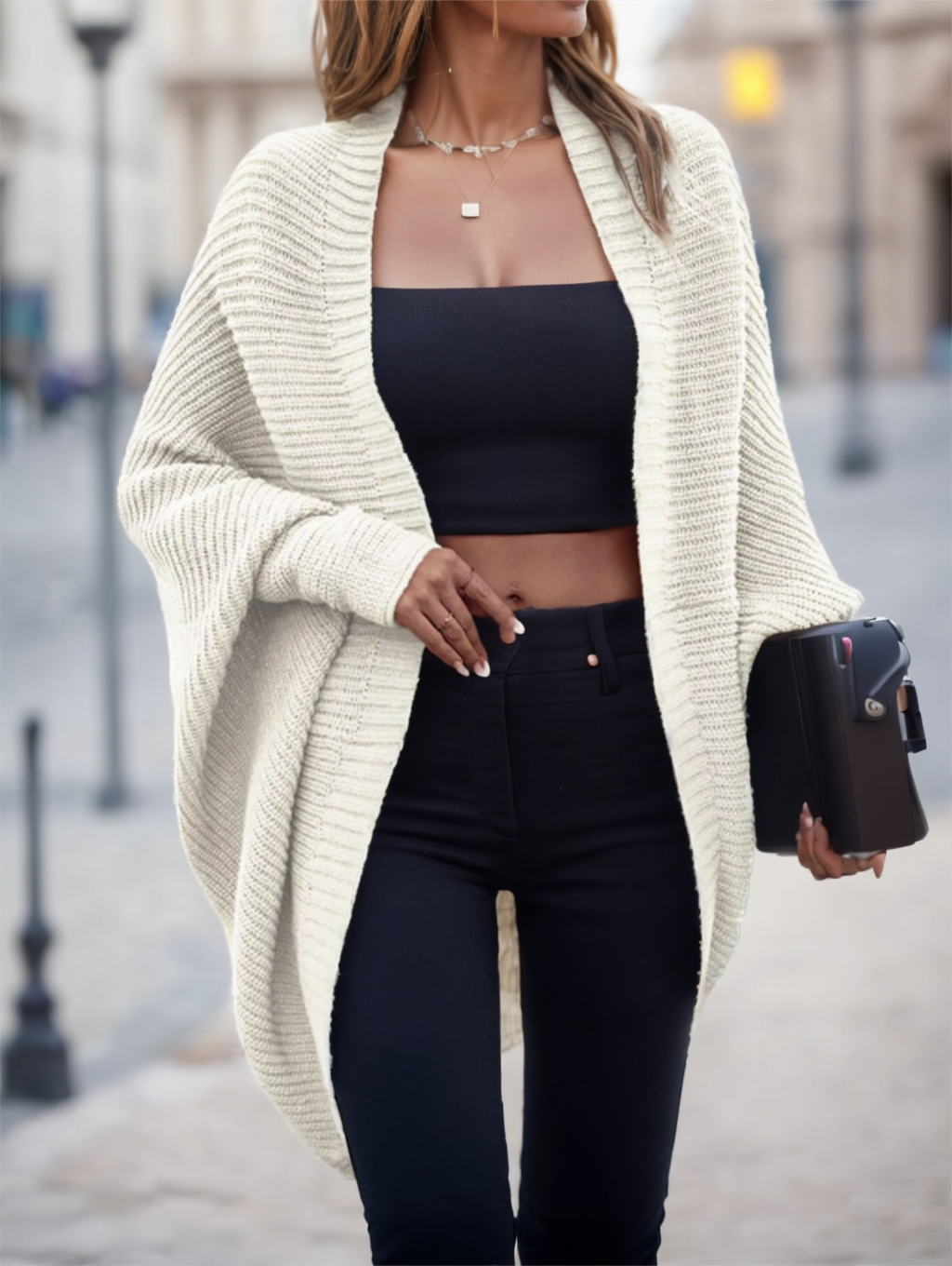 Women's Solid Color Bat Sleeve Loose Casual Cardigan