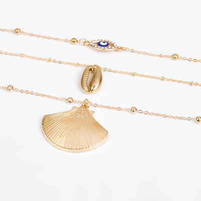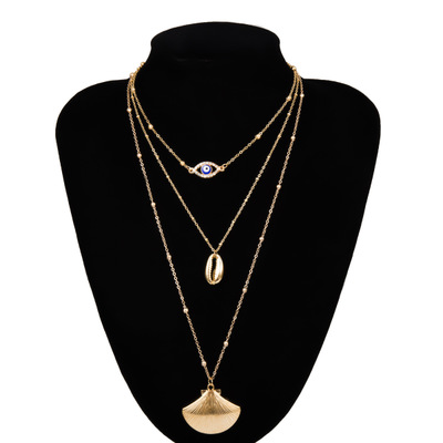 Retro simple geometric multilayer scallop necklace