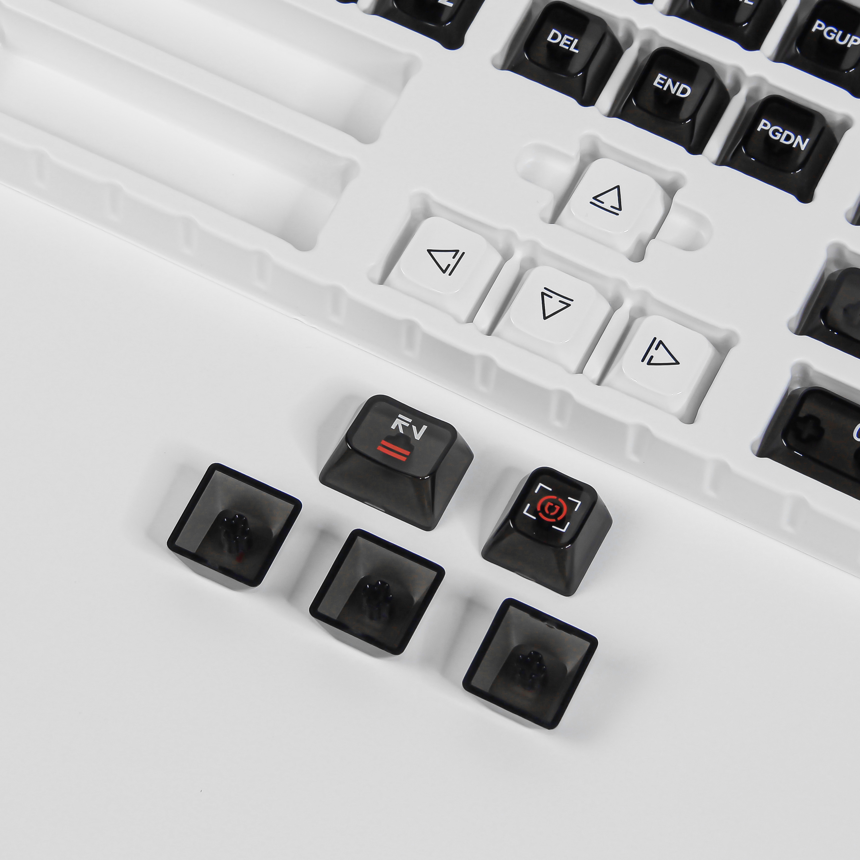 Product information: Model: mda116 key cap Material: Plastic Color classification: white transparent key cap, solid white, 9 black transparent double spell key cap, black transparent, 9 Real white double spell characters Process: Printing