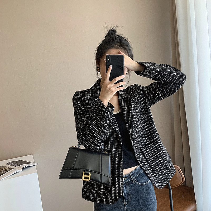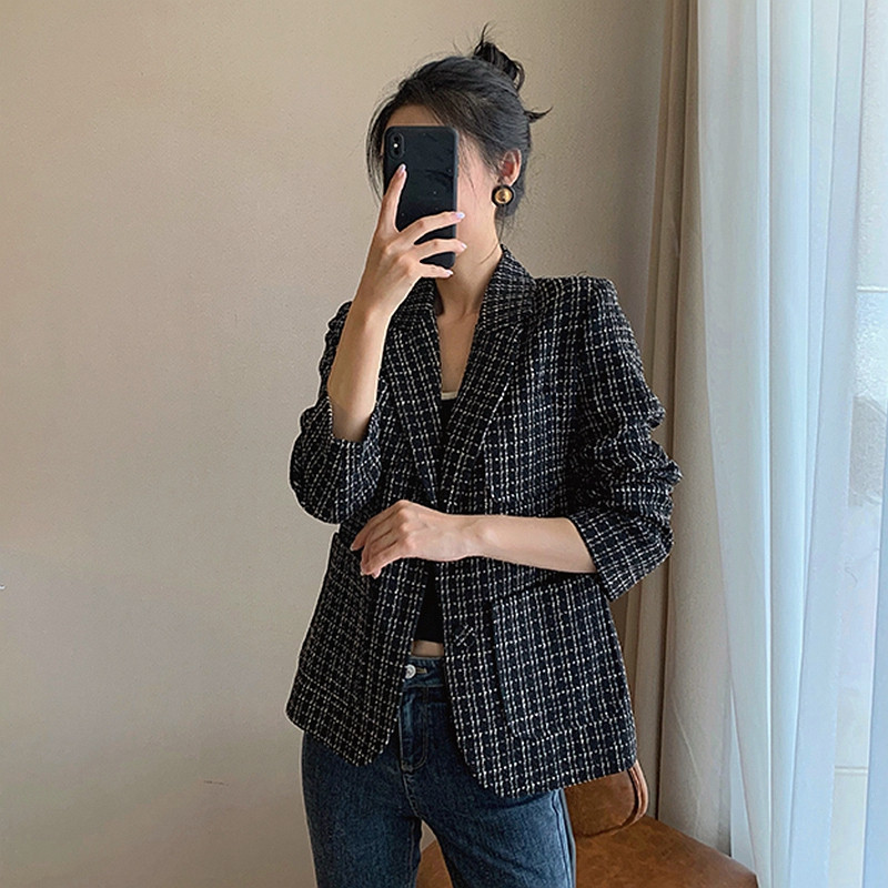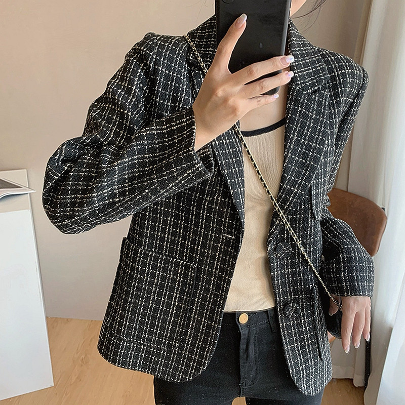 Pattern: CheckCollar: suit collarClothing placket: single-breastedSleeve type: conventionalSleeve length: long sleeveClothing version type: loose