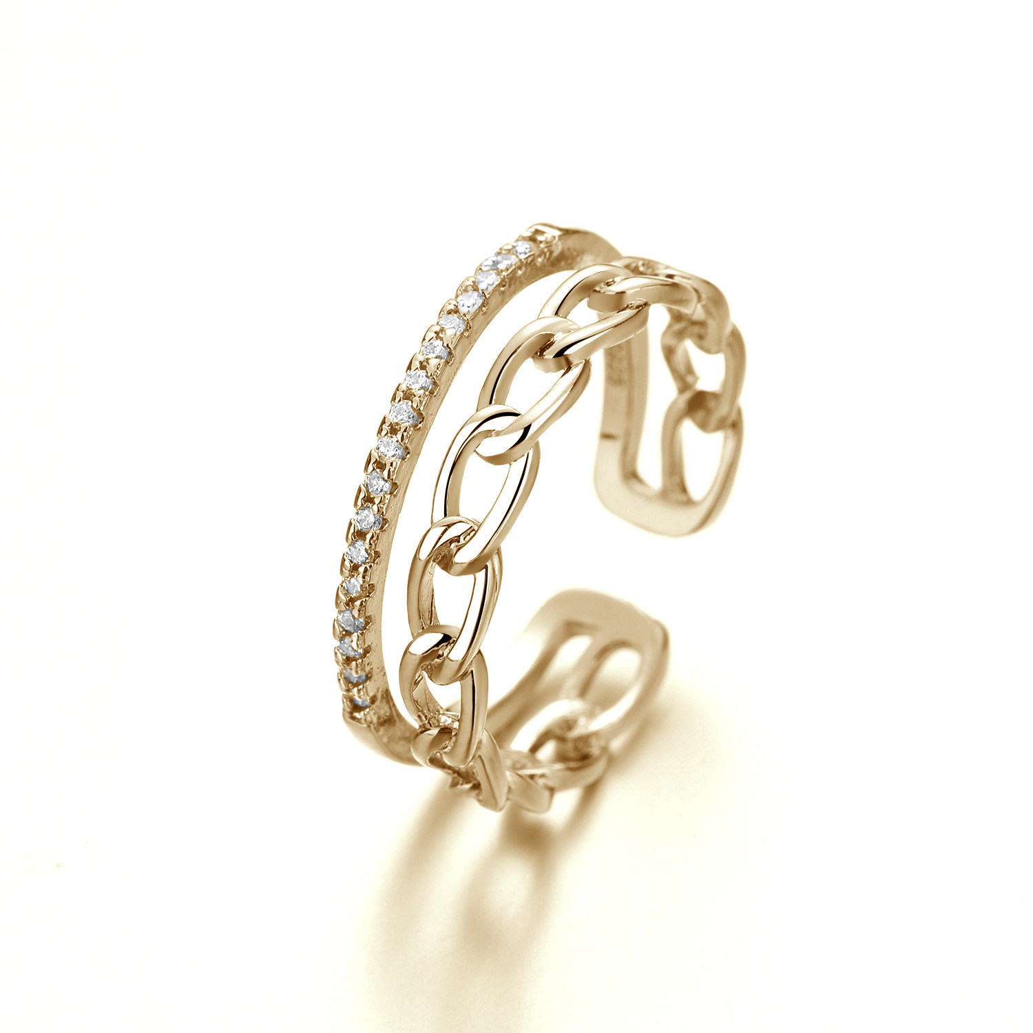 Product information:Type: Ring Treatment Process: inlaid zircon Color: gold, silver Applicable population: Female Size: adjustable opening Style: Women's Material: Copper Shape: Geometry Popular elements: Lines Style: net red wind