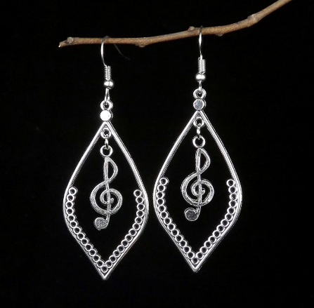 Vintage Hollow Silver Antique Music Sheet Earrings