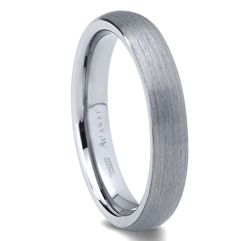 Unisex Tungsten Carbide Ring Dome Matte / Brushed Comfort Fit Wedding Ring Bands Engagement Rings Jewelry, 4mm Wide,