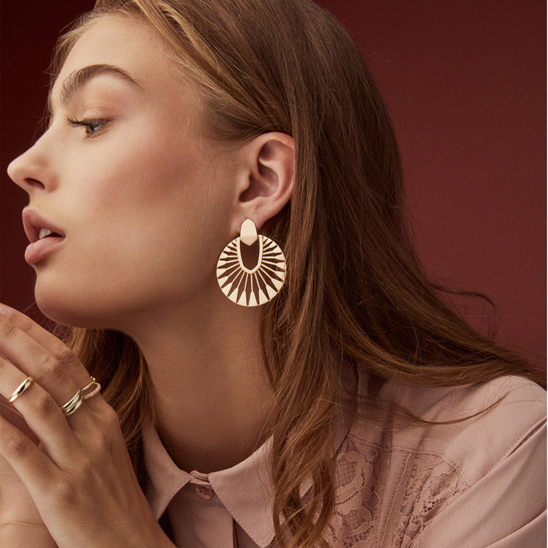 Hollow fan-shaped women's earrings