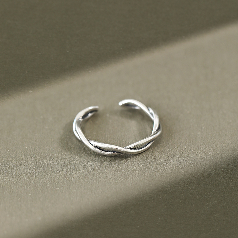 Type: RingMaterial: SilverStyle: KoreanShape: twistTreatment process: polishingStyle: Women'sColor: Antique Plain SilverSize: Opening adjustable