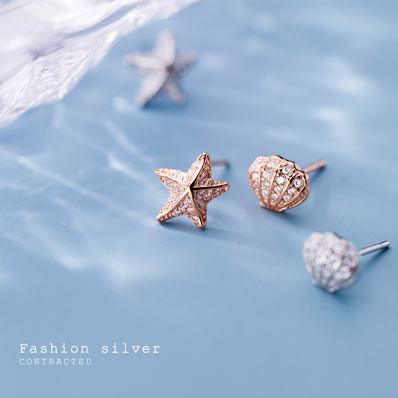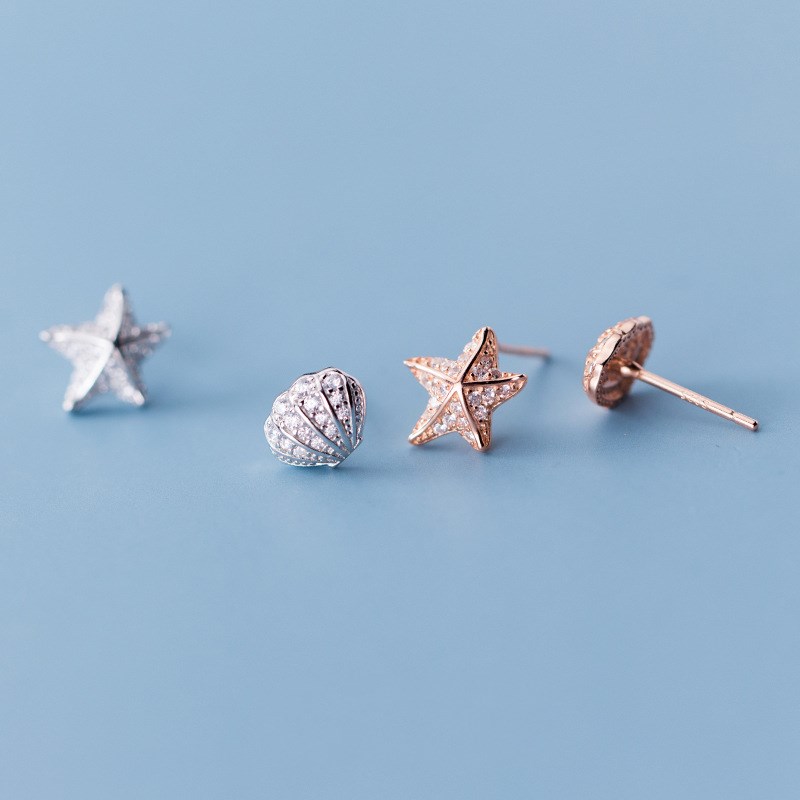 Starfish Shell Full Diamond Asymmetric Ear Jewelry