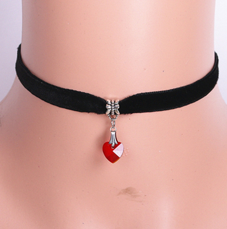 Fashion hot black heart crystal necklace colorful pendant Rope Chain Necklace For Women Vintage Jewelry