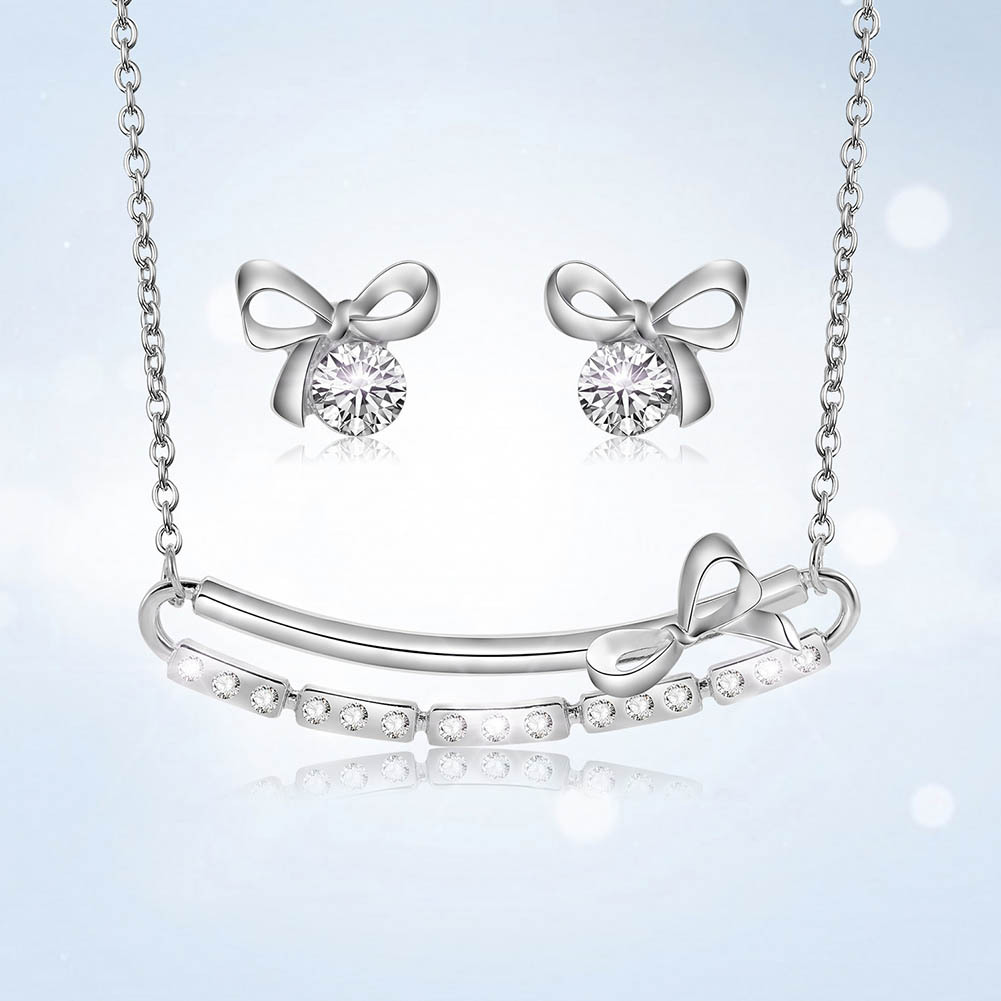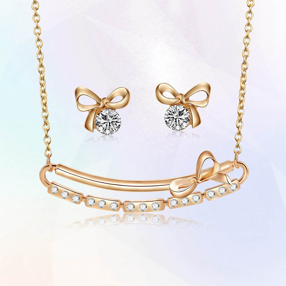 Product information:Material: AlloyProcessing technology: diamondStyle: Women'sSet combination: earrings + item decorationsPattern: Love/Water Drop/BellColor: 61172549A,61172549BPacking list:Alloy earrings X1pair Necklace*1