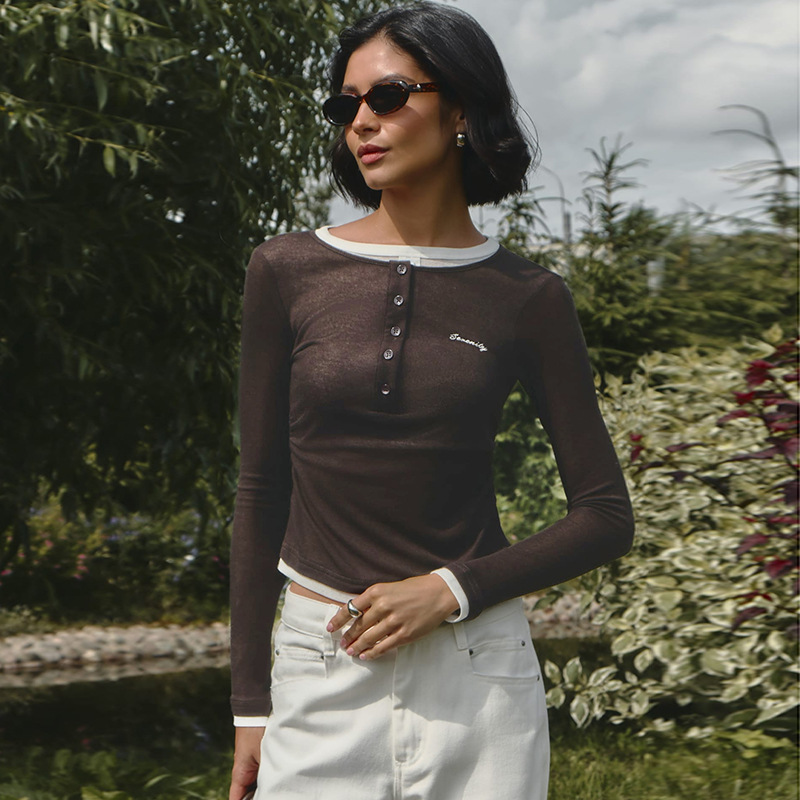 Product information: Color: brown, gray, khaki Style type: Japanese and Korean casual Style: False two-piece suit Main fabric composition: Polyester (polyester fiber) Sleeve length: long sleeve Style: casual style Craft: embroidery/embroidery