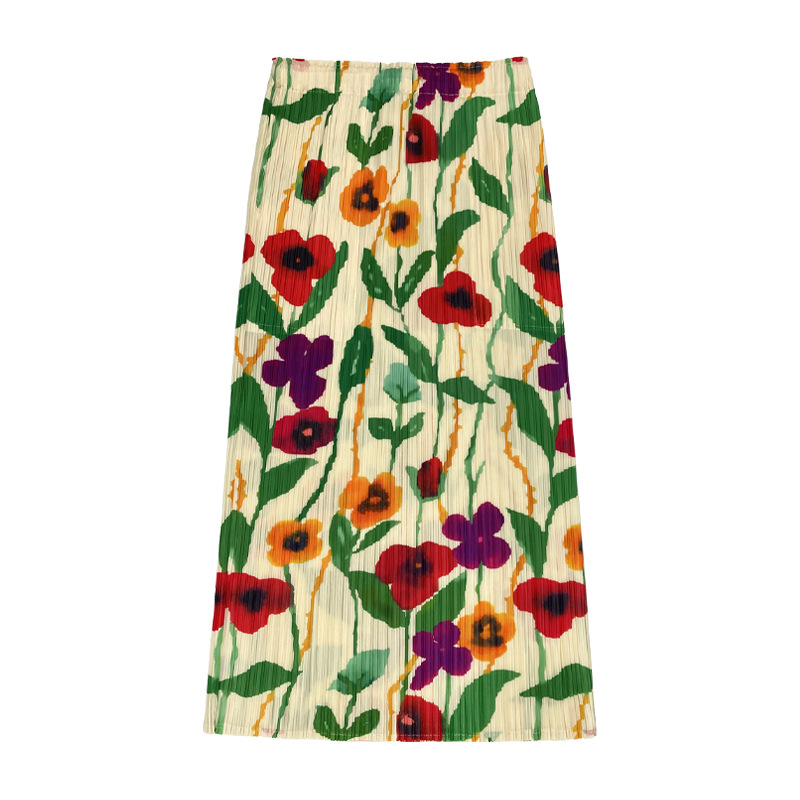 Color: Lily skirt, yellow floral skirt, colored thread red dress, colored thread blue skirt, oil painting skirt, elephant skirt