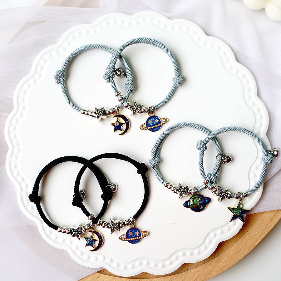 Color : 717A - black rope golden planet pair (with magnetic clasp), 717B - gray rope golden planet pair (with magnetic clasp), 717C - black rope dream planet pair (with magnetic clasp), 717D - gray rope dream planet pair (with magnetic clasp)
