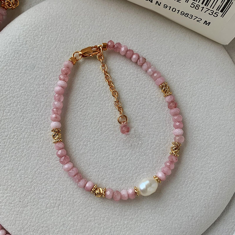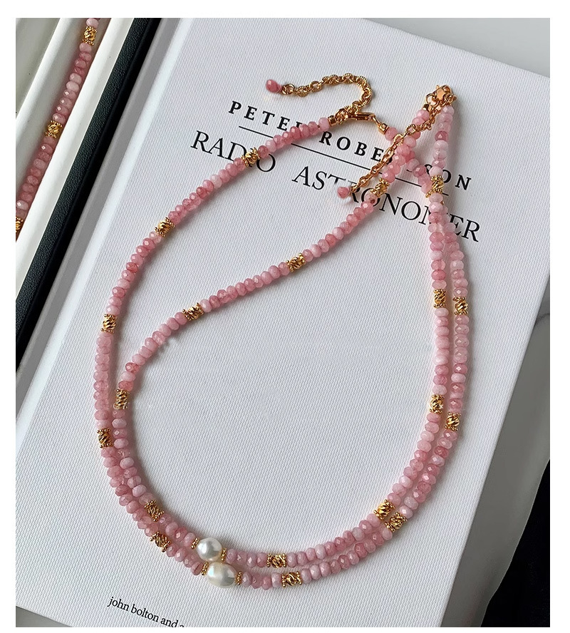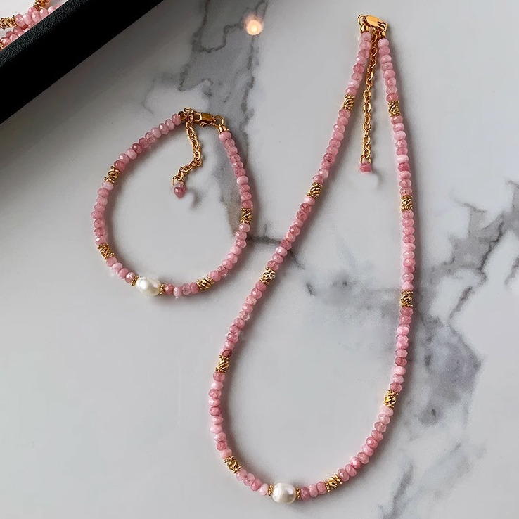 Color: freshwater pearl pink natural stone necklace, freshwater pearl pink natural stone bracelet