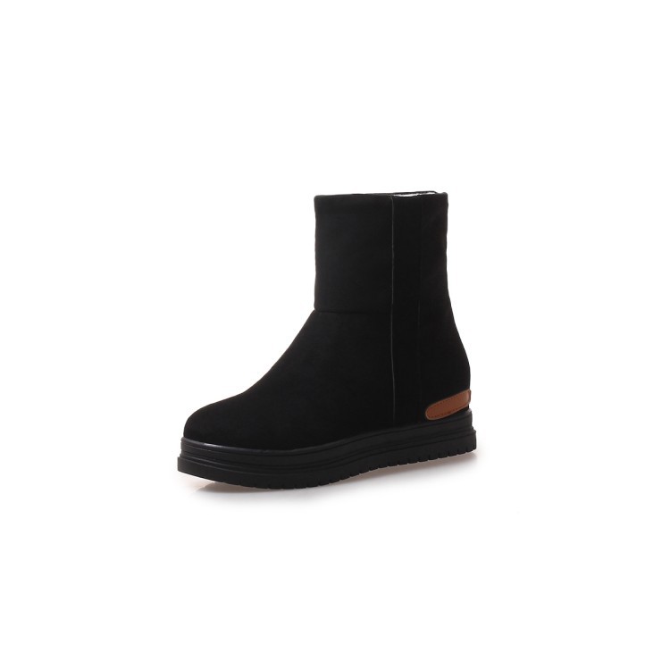 Upper Material: Artificial PUSole Material: RubberUpper height: highToe shape: round headHeel shape: Wedge heelInside material: artificial lamb hairOpening depth: deep mouthStyle: KoreanStyle: casual