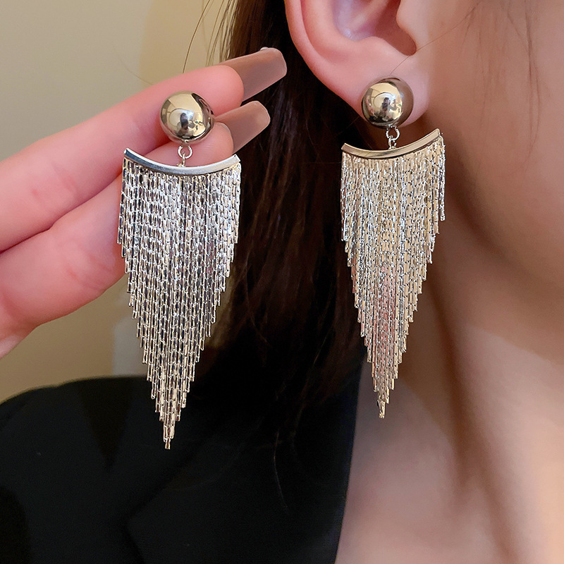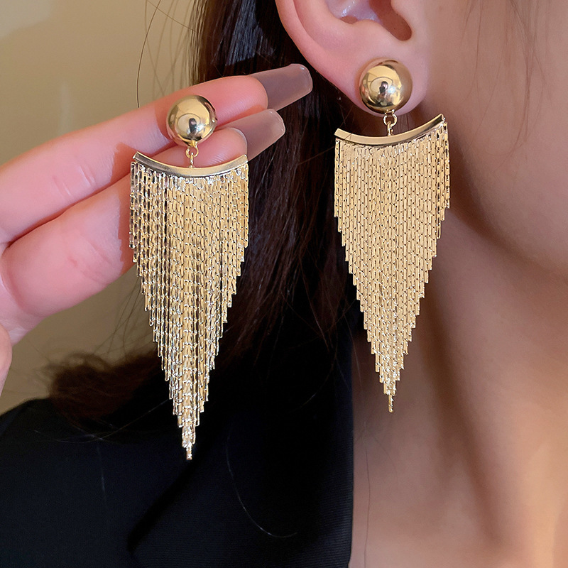 Product information:Color: gold, silver Applicable people: women Material: Copper Shape: Wave Popular elements: Tassel, chain Style: affordable luxury style