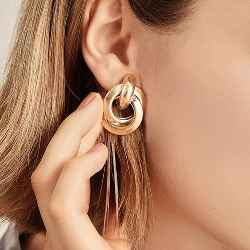 Simple double circle knotted earrings