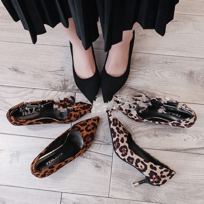 Product Category: Fashion SandalsApplicable age: adultUpper material: suedeSole material: PUStyle: KoreanToe shape: pointedHeel height: high heel (6-8CM)Heel shape: stilettoPopular elements: shallow mouth, leopard print
