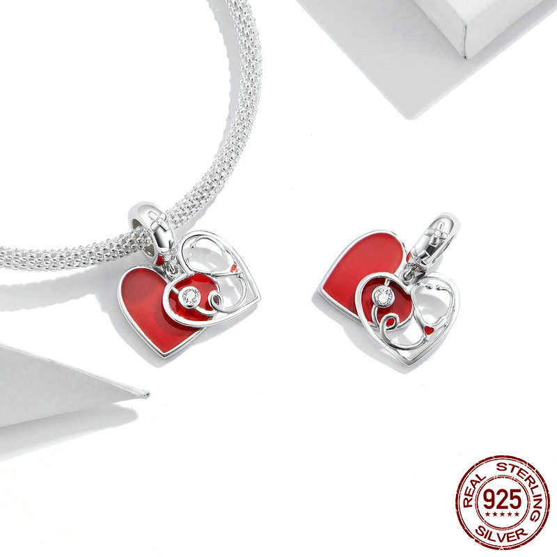 S925 sterling silver pendant with heart-shaped stethoscope