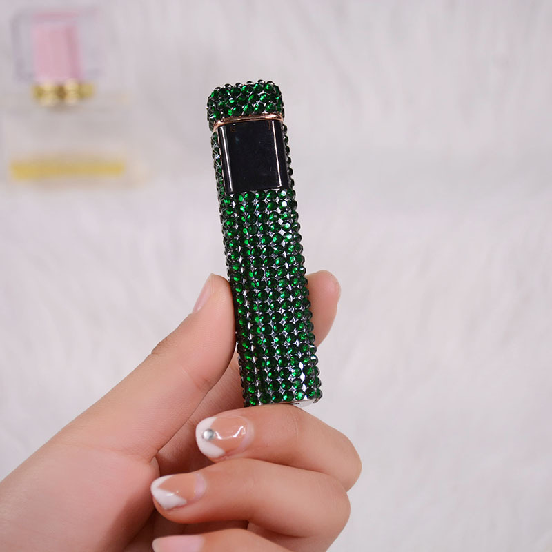 Name: Full Drill touch screen dual arc lighterMaterial :AAA rhinestone, alloyProduct size: 8.2cm high; 2cm long; Width 2cm